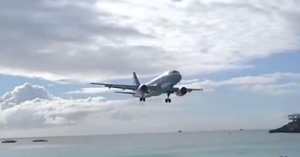 飞机降落在沙滩上日光浴者头顶几米高的恐怖机场