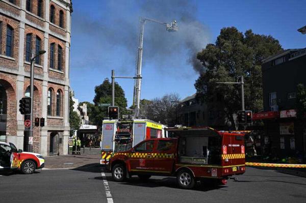 火灾发生后,工作人员正在努力阻止公寓墙壁倒塌