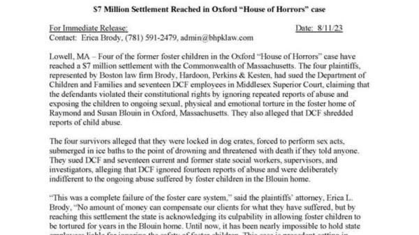 马萨诸塞州的“恐怖之屋”涉及被虐待的寄养儿童被关在狗笼子里,与州政府达成和解