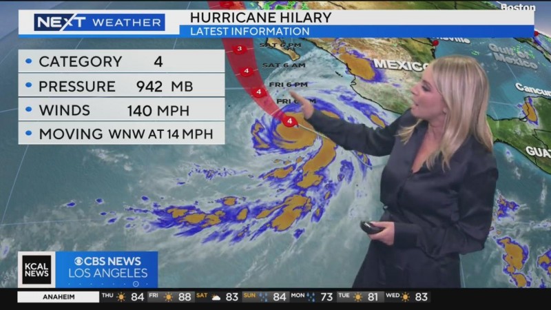 飓风希拉里在向南加州移动的过程中加强到4级