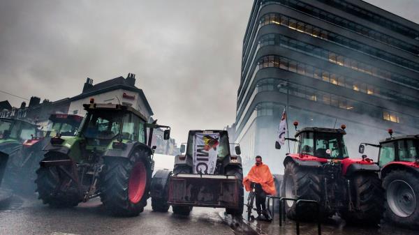 欧盟峰会当天,农民在布鲁塞尔举行抗议活动