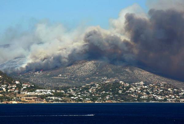 居民和游客逃离希腊野火