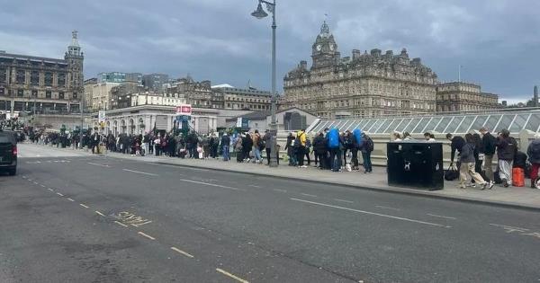 爱丁堡火车站外排队的乘客被告知“先到先得”,引发混乱
